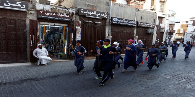 بمناسبة اليوم العالمي للمرأة مارست مجموعة سعوديات، الخميس، رياضة الركض في منطقة جدة القديمة المعروفة محليا بـ”البلد”، بزي تجاوز عادات المجتمع المحافظ، أطلق عليه “العباءة الرياضية”.
