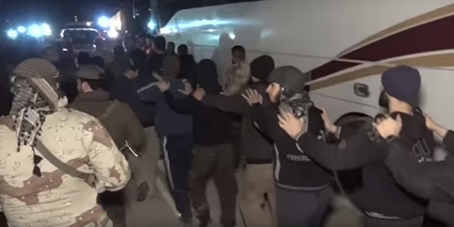 الإعلام الروسي : ” جيش الإسلام يسلم مسلحي جبهة النصرة للجيش السوري لترحيلهم إلى إدلب ” ( فيديو )