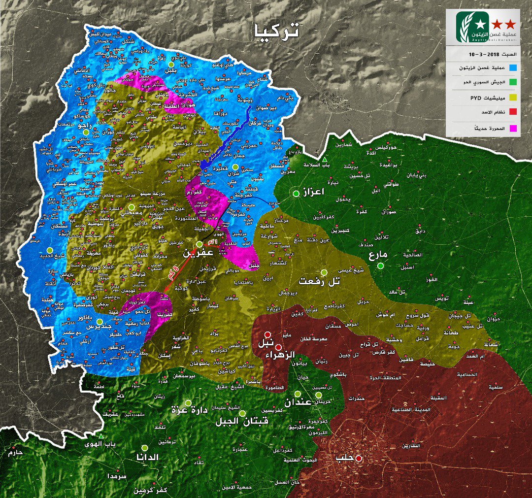 المرصد السوري : القوات التركية تصل مشارف عفرين .. و أكثر من 200 شهيد مدني منذ بدء ” غصن الزيتون ” جراء القصف الجوي و المدفعي