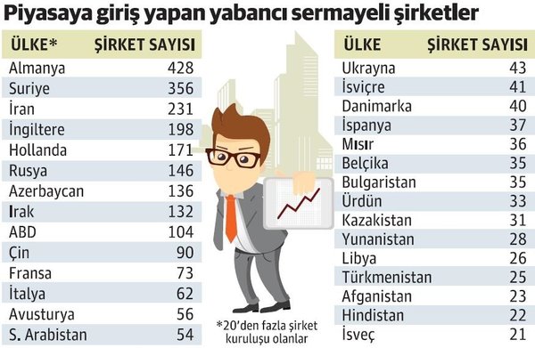 وقالت صحيفة “تقويم” التركية، في تقرير لها الشهر الماضي، بحسب ما ترجم عكس السير، إن عدد الشركات التجارية الأجنبية، في السوق التركي، وصل إلى 58422 شركة، مع نهاية العام الماضي، حيث شهدت الأشهر الستة الأخيرة، افتتاح 3213 شركة، تصدرتها من حيث المنشأ، الشركات الألمانية مجدداً، بـ 428 شركة.