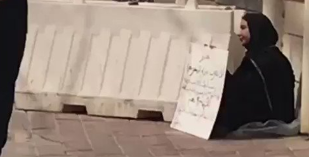 ونشر مغردون على تويتر صورا ومقاطع فيديو تظهر المرأة وهي تجلس في أحد شوارع الكويت، فيما وقف رجال أمن أمامها وهم يراقبون من دون أن يتدخلوا.