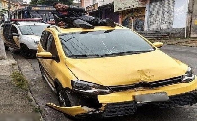 وأظهر مقطع فيديو نشر على موقع يوتيوب الإلكتروني، لحظة اصطدام السيارة الصفراء بدراجة سوزا دي أوليفيرا (28 عاماً) الذي نجح بالقفز إلى سطحها وتشبث به ريثما يتصل بسيارة الإسعاف، وفق ما اوردت شبكة ” 24 ” الإماراتية، وعلى الرغم من أن المارة حاولوا تنبيه السائق إلى “الراكب الإضافي”، إلا أنه كان غير مدرك بأن الضحية لا يزال على سطح سيارته.
