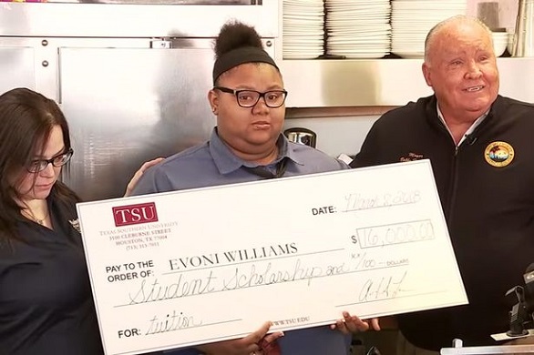 وسرعان ما انتشرت القصة كالنار في الهشيم، وعبر الكثيرون عن رغبتهم في مساعدة النادلة الطيبة، وجاءت الأخبار السعيدة من جامعة تكساس ساوثرن، التي قررت أن تقدم منحة قيمتها 16 ألف دولار، لتتمكن إيفوني من تحقيق حلمها بداراسة إدارة الاعمال في الجامعة.