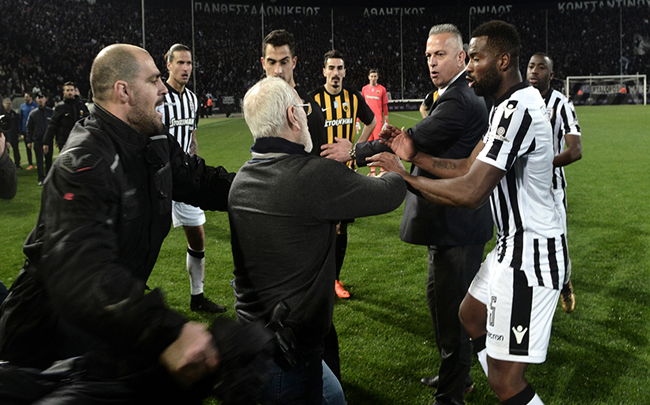 وتشهد كرة القدم اليونانية أزمة منذ الأحد، بعد دخول رئيس نادي باوك سالونيكي رجل الاعمال الروسي-اليوناني إيفان سافيديس الى أرض ملعب المباراة ضد ضيفه أيك أثينا، ومسدسه ظاهر على خصره، احتجاجا على قرار من الحكم. وقررت الحكومة الاثنين تعليق مباريات الدوري اليوناني، في أعقاب أحدث فصول سلسلة أعمال الشغب والعنف التي تشهدها الملاعب اليونانية خلال الأعوام الماضية.