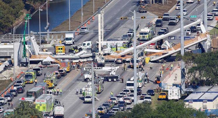 قُتل اربعة اشخاص على الأقل جراء انهيار جسر مشاة مشيد حديثا فوق طريق سريع في مدينة ميامي على الساحل الشرقي للولايات المتحدة، ما تسبب ايضا بتحطم عدد من السيارات.