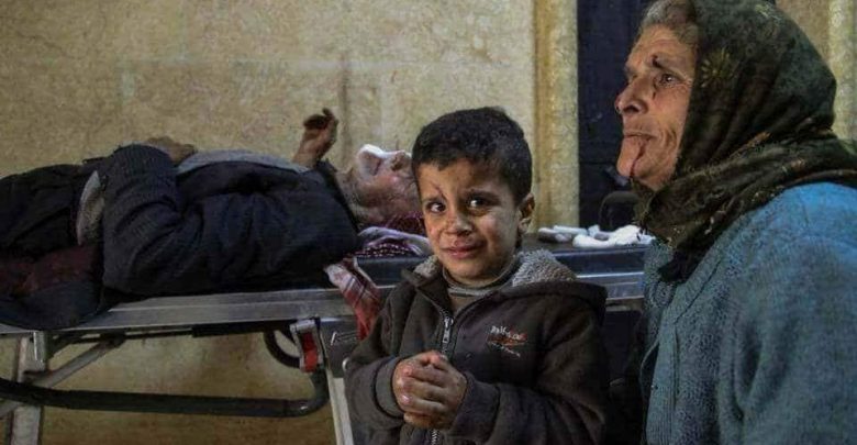 وذكر المرصد أن قصفاً لمدنيين من ضمنهم نازحون كانوا يفرون من المدينة، أدى إلى استشهاد 22 شخصاً بينهم 7 أطفال.
