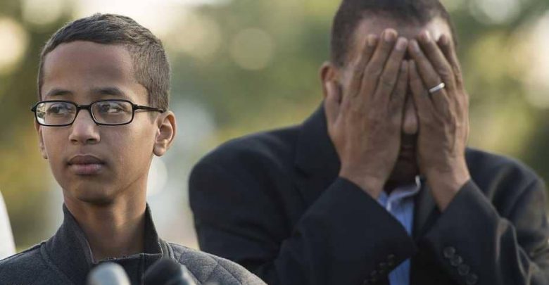 وكان محمد قد تعرض للاعتقال عام 2015، بعد أن اصطحب معه ساعته التي اخترعها إلى المدرسة في آرلينغتون بولاية تكساس، واعتقدت معلمته أنها “قنبلة”، فتم الاتصال بالشرطة ومن ثم اقتياده مقيدا بالأصفاد.