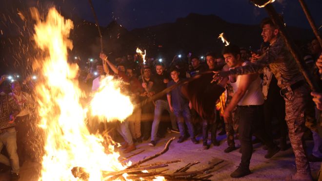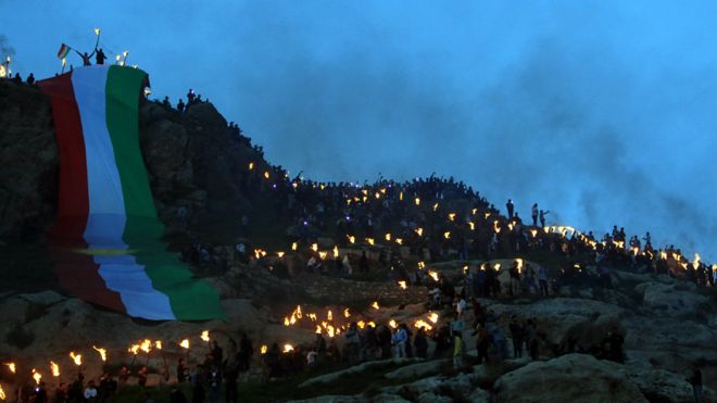 المشاعل إشارة إلى بدء الاحتفالات بعيد نوروز – الصورة من عقرة بكردستان العراق