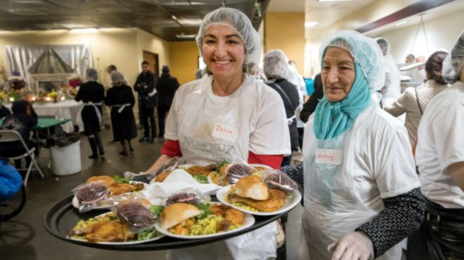 في لوس انجليس بالولايات المتحدة أمريكيات من أصول ايرانية يحتفلن بعيد نوروز بتوزيع الطعام على المشردين والذين لا مأوى لهم