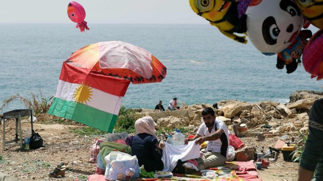 في العاصمة اللبنانية، أكراد يحتفلون على ساحل البحر في بيروت