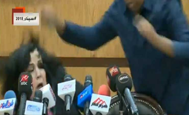 مواطن يعتدي على مسؤولة مصرية على الهواء مباشرة ( فيديو )