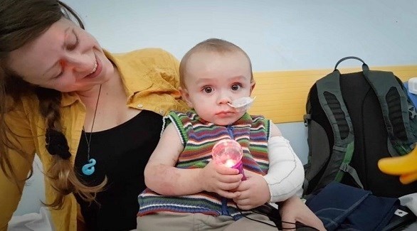 وتم نقل الطفل إلى مستشفى برمنغهام للأطفال على الفور حيث أودع في وحدة العناية المركزة، قبل أن يضطر الأطباء لبتر ساقه لإنقاذ حياته بعدما أدركوا بأن انتانات دموية أصابت أوردة وشرايين ساقه اليمنى.