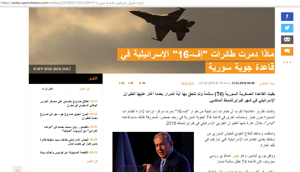 وكالة روسية : ” ماذا دمرت طائرات إف – 16 الإسرائيلية في قاعدة جوية سورية ؟ “