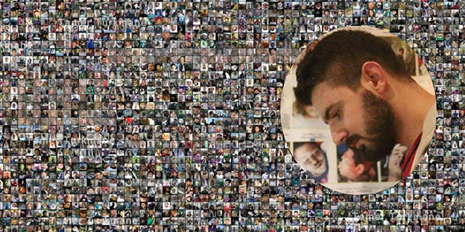 ووضع المصور “تامر تركماني”، الذي يقول إنه يصنع مشروعاً لتوثيق شهداء الثورة السورية، صوراً صغيرة للشهداء ليشكل مجموع الصور صورة ضخمة تضم عشرات الآلاف منهم.
