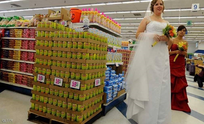 فوجئ متسوقون حين سمعوا عبر مايكروفون متجر سوبر ماركيت العبارة التالية “على جميع المتسوقين الانتباه: هناك حفل زفاف في الممر 13”