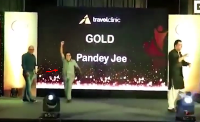 شهد حفل لتوزيع الجوائز أقيم في منطقة أغرا، شمالي #الهند وفاة رجل أعمال هندي بشكل مفاجئ أثناء رقصه على المسرح خلال الحفل.
