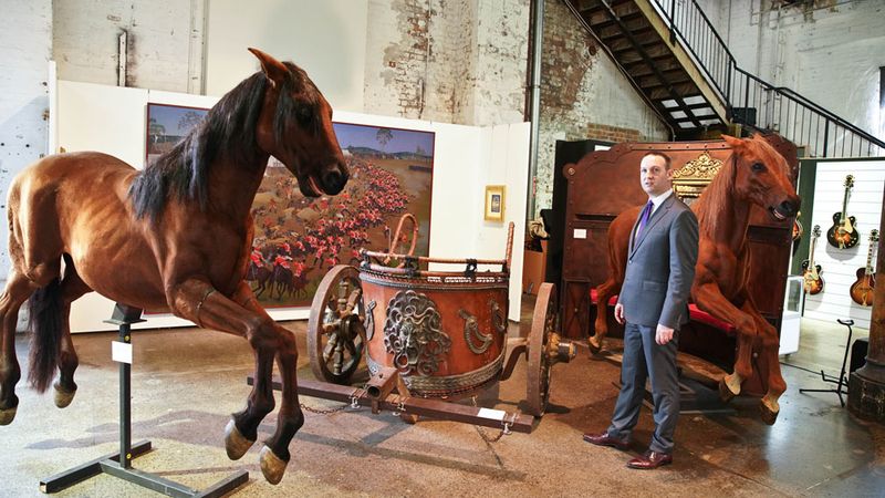عربة على الطراز الروماني وساعة يد رولكس ذهبية وحزام سترة مصنوعة من الجلد وكمان عمره 128 عاماً مقتنيات للنجم الأسترالي راسل كرو حققت أكثر من 2.8 مليون دولار أميركي عند بيعها في مزاد.