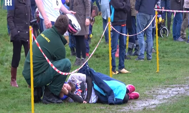 وشاركت السيدة التي لم تذكر هويتها، مع زوجها في مسابقة وطنية في بريطانيا لحمل الزوجات، عندما انزلق زوجها وهو يهرول بها، لدى مروره ببركة ماء موحلة، وسقطا سوياً على الأرض.