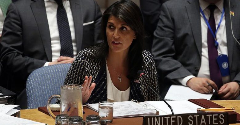 قالت السفير الأمريكية لدى الأمم المتحدة، نيكي هايلي، الأحد، إن واشنطن “ستفرض، غدًا الإثنين، عقوبات جديدة ضد موسكو والشركات المرتبطة ببرنامج سوريا للأسلحة الكيميائية”.
