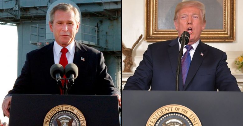 شبهته بجورج بوش .. ترامب يهاجم وسائل إعلام انتقدت عبارته ” المهمة أنجزت ” في سوريا