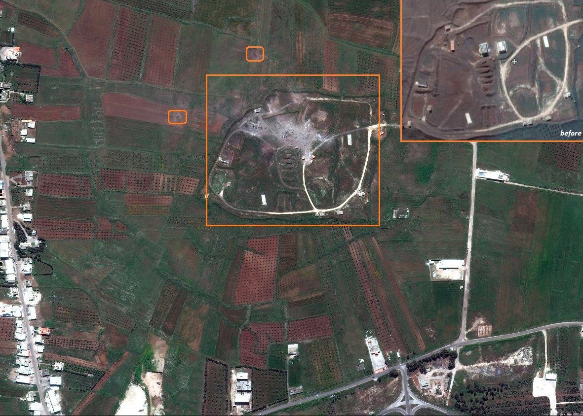 وتناقل ناشطون عبر مواقع التواصل صوراً أخرى تظهر منشأة نظامية، غربي مدينة حمص، استهدفتها الطائرات البريطانية ودمرتها بالكامل.