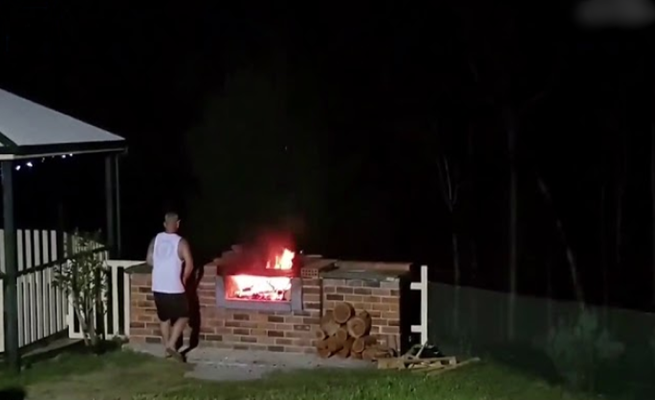 لحظة اندلاع النيران برجل أسترالي أثناء حفل شواء ( فيديو )