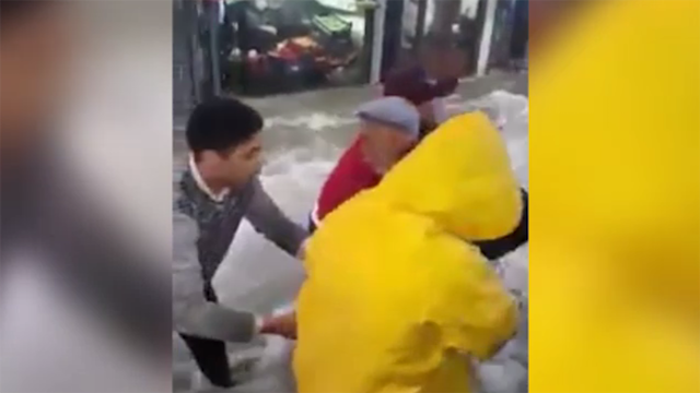 تداول ناشطون أتراك، على موقع التواصل الاجتماعي فيسبوك، مقطعاً مصوراً، لإنقاذ رجل مسن بصعوبة من الغرق، في مدينة أنطاكيا، بعد أن شكلت الأمطار الغزيرة فيضاناً، كما حذروا من الاقتراب من سوق أنطاكيا الطويل، بسبب تراكم السيول.