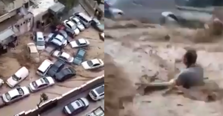 وأظهرت المقاطع جرف السيول للعديد من السيارات، ما أدى لتعرضها لأضرار جسيمة.