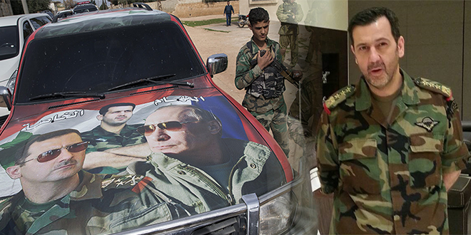 عميد ركن او لواء اركان او او من هده المسميات مادا قدمت لسوريا غير الدمار والخراب والقتل والتهجير بل ان راس النظام لا يستطيع ان يتبول الا بادن من بوطين او سليماني.