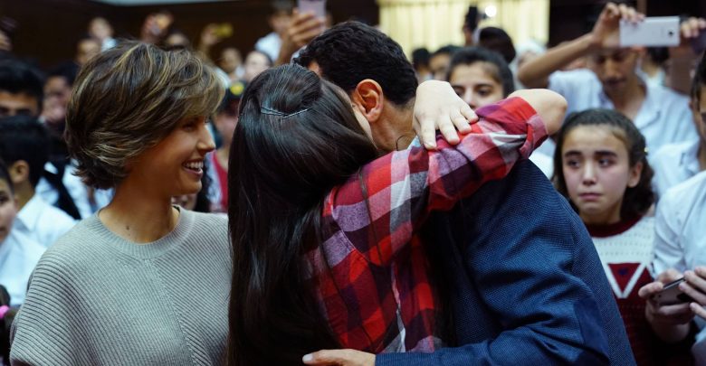 زار بشار الأسد وزوجته، الجمعة، مدرسة “بنات الشهداء” في المزة بدمشق.