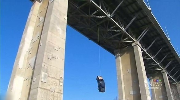 ما سر السيارة التي عثر عليها متدلية من جسر في تورونتو ؟ ( فيديو )