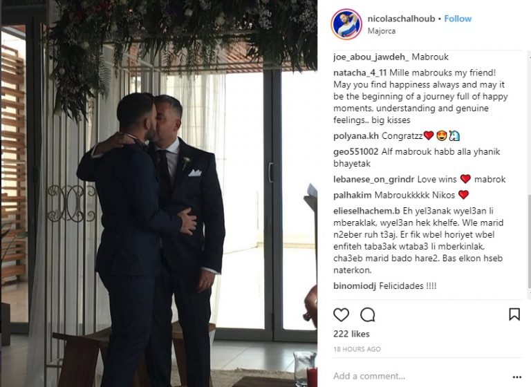 نيقولا شلهوب الذي ترك بلاده ليهاجر إلى جزيرة مايوركا الإسبانية بسبب ميوله الجنسية وعدم تقبل مجتمعه لهذه الميول، أثار جدلاً واسعًا على مواقع التواصل بالصورة التي نشرها، حيث انتقده فريق كبير من متابعيه، فيما بارك له بعض أصدقائه على زواجه من رجل.