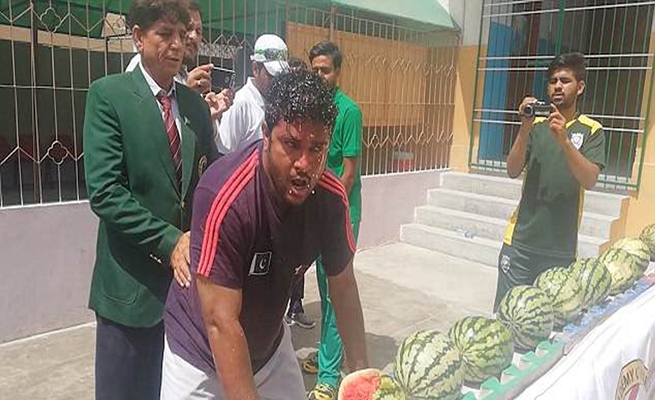 باكستاني يسجل رقماً قياسياً بتحطيم 51 بطيخة برأسه ( فيديو )