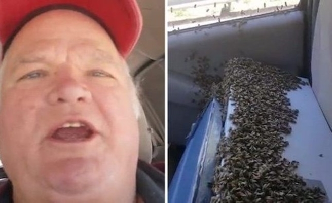 سائق أمريكي يتفادى لدغات سرب نحل غزا شاحنته ( فيديو )