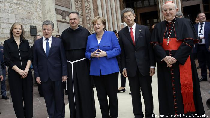قالت المستشارة الألمانية أنغيلا ميركل، السبت، إنه يتعين على أوروبا أن تفعل المزيد لإنهاء الحرب في سوريا، وذلك في كلمة ألقتها خلال تسلمها جائزة “مصباح السلام” للقديس فرنسيس من الرهبان الفرنسيسكان في مدينة أسيزي الإيطالية مسقط رأس القديس فرنسيس، لتنضم بذلك إلى زعماء سابقين حصلوا عليها مثل رئيس بولندا السابق ليخ فاونسا والدالاي لاما والرئيس الإسرائيلي الراحل شمعون بيريس والرئيس الكولومبي خوان مانويل سانتوس.