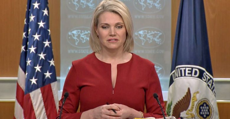 جاء ذلك في مؤتمر صحافي، للمتحدثة الرسمية باسم الخارجية هيدر نورت، يوم الثلاثاء.
