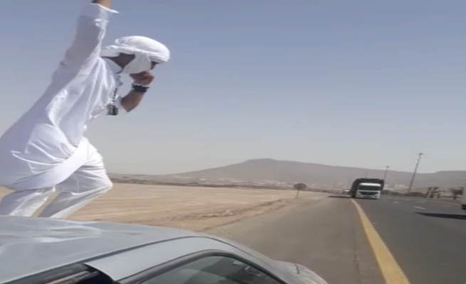 يذكر أن فيديو “صادماً” لشاب قفز بشكل بهلواني أمام شاحنة مسرعة على طريق عام، قد انتشر في مواقع التواصل الاجتماعي، وتداوله المغردون وطالبوا بوضع حد لمثل هذه التصرفات “المستهترة”، التي قد تودي بحياة الآخرين.