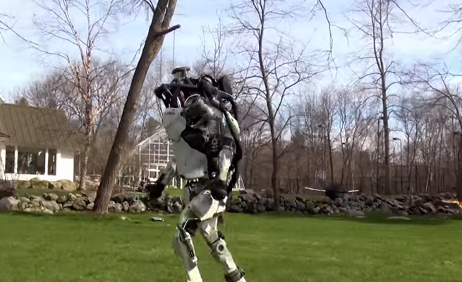 نشر موقع مجلة “تايم” الأميركية مقطعي فيديو جديدين مؤخراً، يظهر ان ما يمكن أن تفعله الروبوتات Atlas وSpotMini من إصدارات شركة Boston Dynamics، ويعرض مقطع الفيديو هرولة سريعة للروبوت Atlas عبر ساحة ويقفز فوق قطعة خشب.