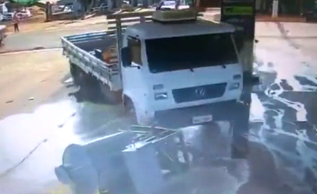 اقتحمت سيارة نقل فقد قائدها سيطرته عليها، محطة وقود بـ #البرازيل لتصدم عاملًا و تسحله أسفلها عدة أمتار.