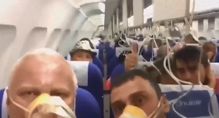 انتشر فيديو يظهر مقصورة الركاب على متن طائرة تركية كانت تطير في رحلة بين مدينتي أنطاليا التركية وتشيليابينسك الروسية، حيث تعرضت لخلل تقني، ما أدى إلى نزولها 30 ألف قدم في خمس دقائق، ومن ثم هبوطها اضطراريا في الأراضي الروسية.