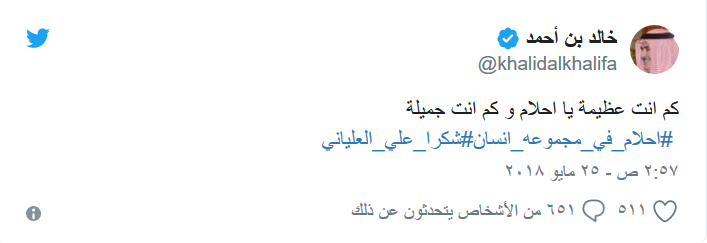 وتفاعل المغردون مع هذه المصالحة، كان من أبرزهم وزير الخارجية البحريني، الذي وصف أحلام بـ “الجميلة”.