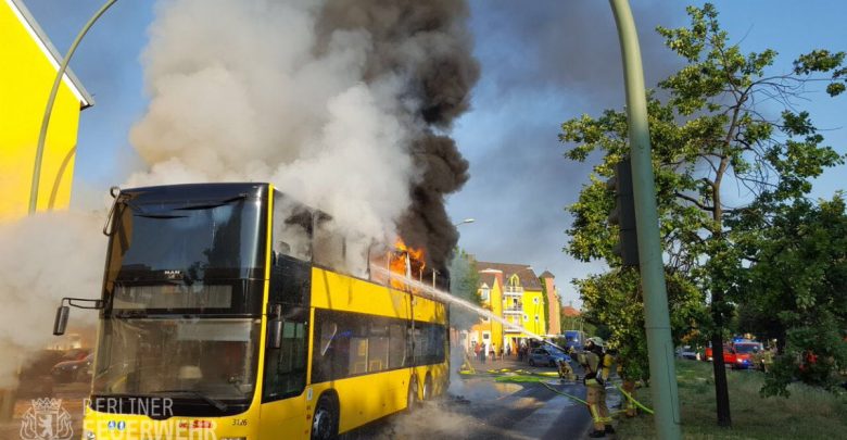 شب حريق في حافلة نقل عام، ذات طابقين، في حي شبانداو، في العاصمة برلين.