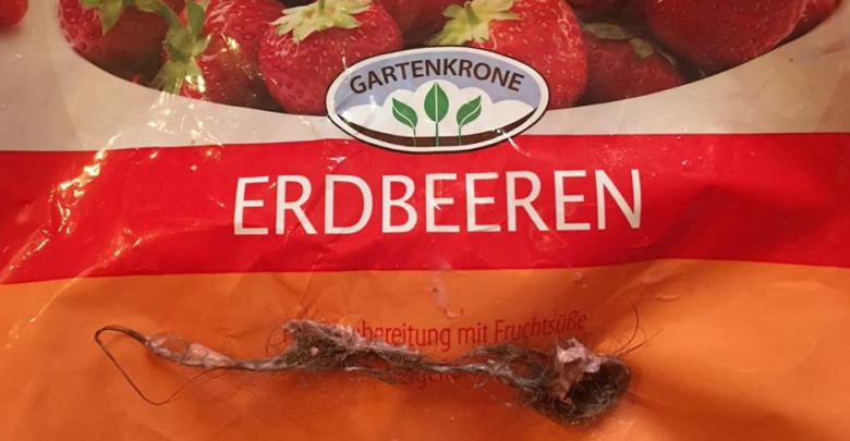 عثرت سيدة ألمانية، على كتلة من الشعر، داخل علبة فراولة مجمدة، أثناء قيامها بإعداد آيس كريم، باستخدام الفراولة التي اشترتها من سلسلة متاجر “آلدي زود”.