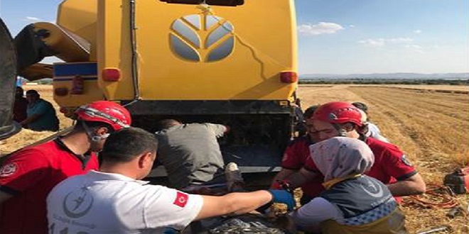 أُصيب عامل سوري إصابة خطيرة، جراء سقوطه داخل آلة حصاد، في محافظة شانلي أورفه، جنوبي تركيا.