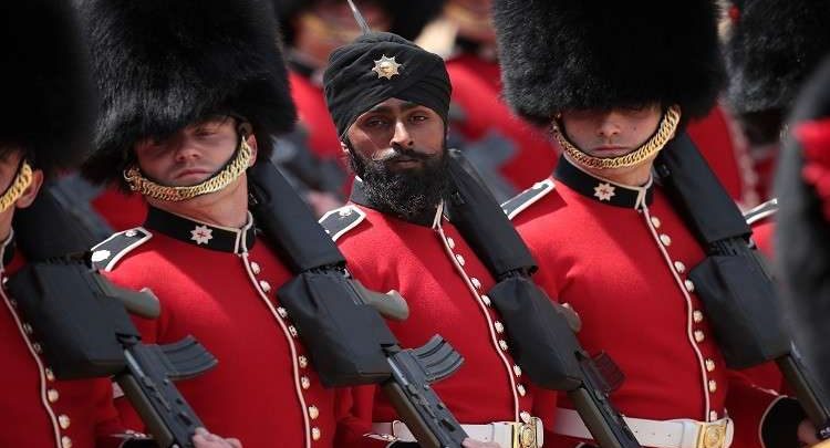 أصبح جندي من فرقة “كولدستريم”، أول من يرتدي عمامة خلال استعراض للقوات البريطانية ضمن الاحتفالات بعيد ميلاد الملكة إليزابيث الثانية الـ 92، السبت.