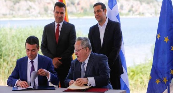 وقعت اليونان ومقدونيا الأحد، اتفاقاً تاريخياً لإنهاء الخلاف الذي استمر نحو ثلاثة عقود حول اسم مقدونيا، مما يمهد الطريق أمام مقدونيا للانضمام لحلف شمال الأطلسي (الناتو) و بدء مباحثات الانضمام للاتحاد الأوروبي.