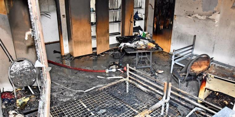 وقالت الشرطة إن نتائج التحقيق الأولية أشارت إلى وجود اشتباه عاجل بالشاب السوداني المقيم في النزل، وأن المحققين افترضوا قيامه بإضرام النار بعدة أشياء، في قبو النزل، المكون من ثلاثة طوابق، لعدم رضاه عن ظروفه المعيشية.