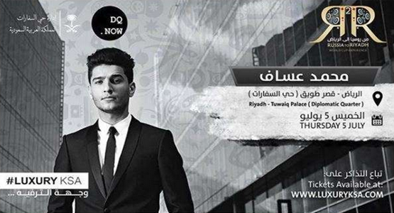ويحيي عساف حفلًا غنائيًا، وذلك للمرة الأولى، في المملكة العربية السعودية، وتحديدًا في مدينة الرياض، بقصر طويق (حي السفارات) بتاريخ 5 تموز.
