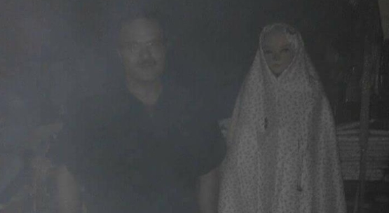 واتجه الرجل للسيدة في محاولة منه لإنقاذها، ليكتشف أنها تمثال (ملوكان باللهجة الحلبية) تم إلباسه “لباس الصلاة”، فظهر كأنه امرأة حقيقية.