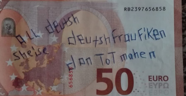 نشرت، كريستينا باوم، عضو البرلمان الألماني عن حزب البديل من أجل ألمانيا، المناهض للاجئين، في ولاية بادن-فورتمبرغ، يوم الجمعة، صورة لورقة نقدية ذات القيمة 50 يورو، مكتوب عليها: “يجب على المرء أولاً ممارسة الجنس مع المرأة الألمانية، ثم القيام بقتلها بعد ذلك”.